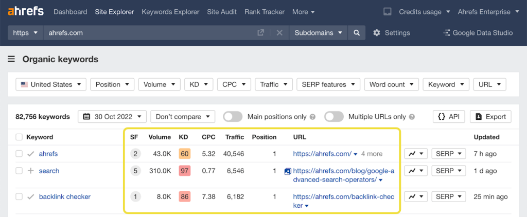 Ahrefs’ Keywords Explorer covers multiple search engines and provides detailed metrics including keyword difficulty, search volume, traffic potential, click-through rate estimates, and SERP analysis. It is generally considered one of the more thorough keyword research tools available.