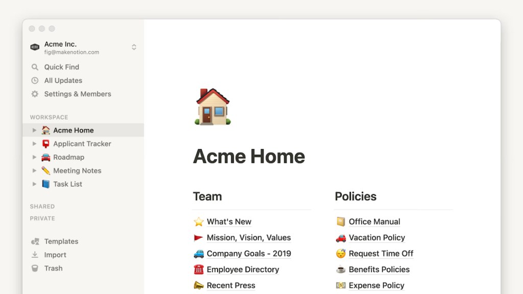 Notion uses a nested page system where pages can contain other pages, databases, and content blocks. It’s more flexible than OneNote’s structure, but it can also become disorganized if not managed intentionally. Notion added a sidebar improvement and a home dashboard in recent updates that help with navigation.